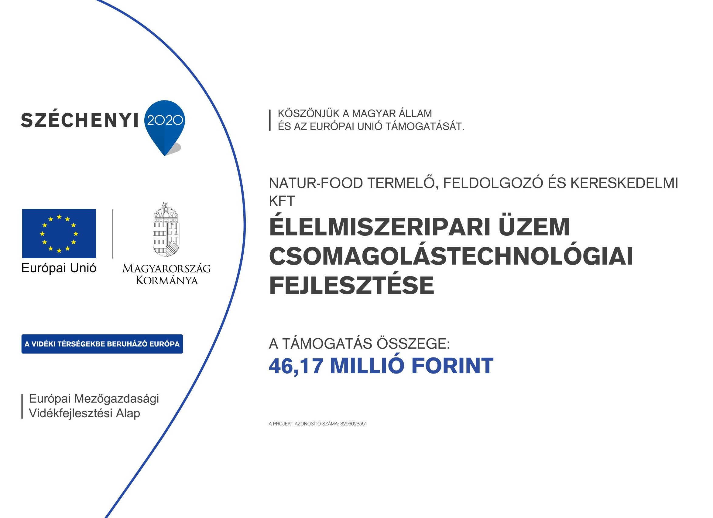 c) A projekt címe, azonosító száma: Élelmiszeripari üzem csomagolástechnológiai fejlesztése, 3296623551